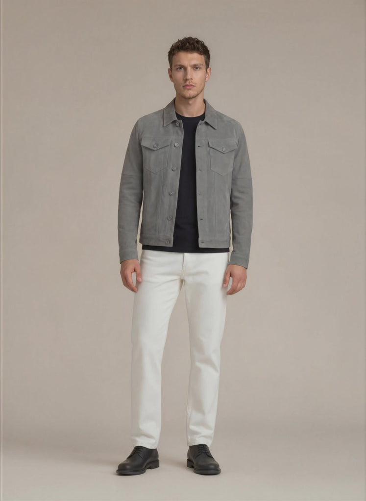 Gray Suede Trucker Jacket San Francisco Man